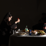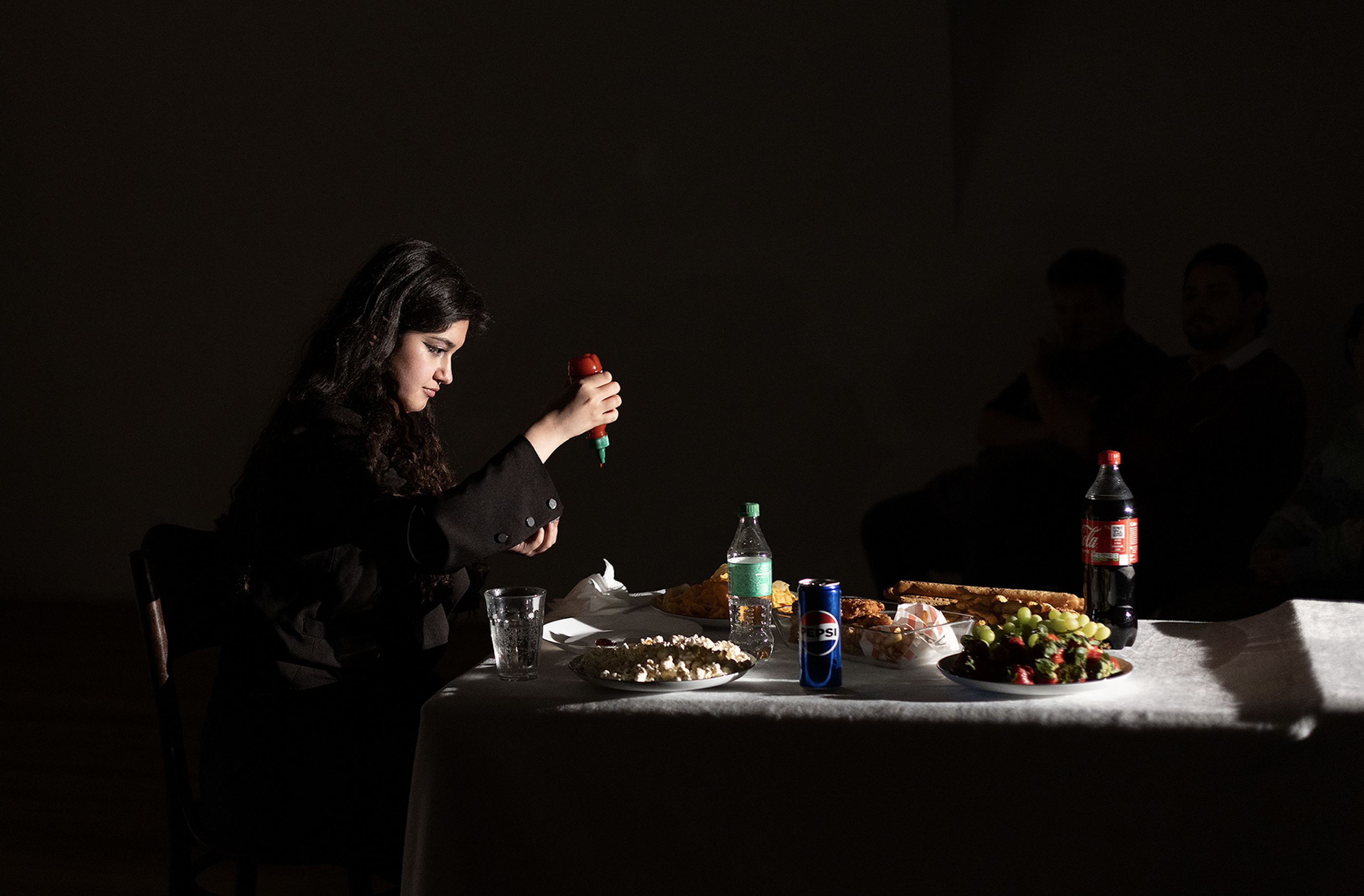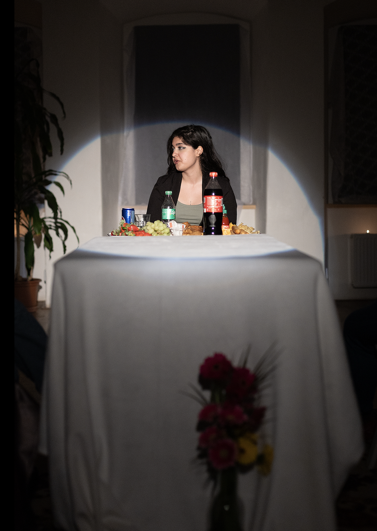 Stůl zde funguje jako místo setkání i jako scénografický prvek. Jídlo prezentované během performance je předem připravené performerstvem, další položky jsou naaranžované jako součást kompozice stolu. Ty vytváří vizuální a smyslovou krajinu, která doprovází vyprávění.
