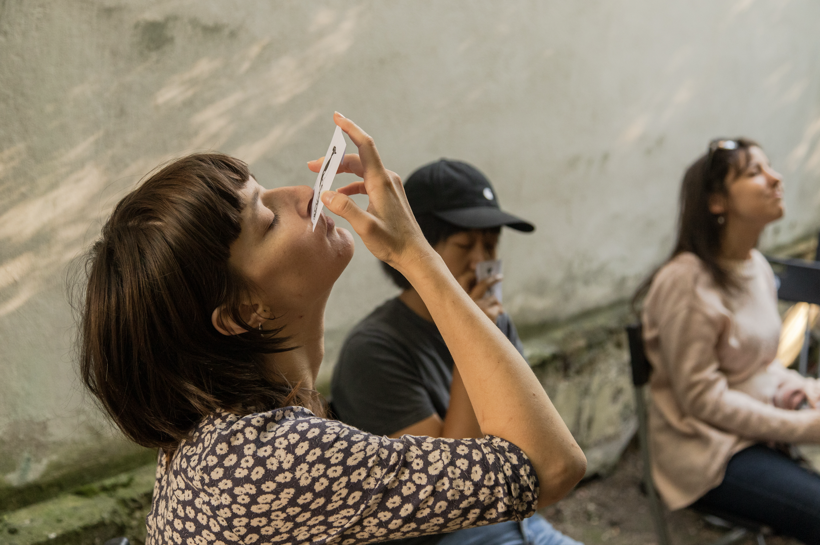 Paper Offerings – Gifts for the Departed vás zve na tichý dvorek naplněný vůní kouře, světlem svíček a příběhy. Vycházejíc z hongkongského rituálu spalování papírových darů pro zesnulé blízké proměňuje dvacetiminutová smyslová performance vzpomínání ve sdílený akt tvorby. Skrze dotek, zvuk a dech vás umělkyně vtahuje do příběhu o papírovém domě, který byl kdysi poslán strýci na onen svět a pak se jemně ptá: