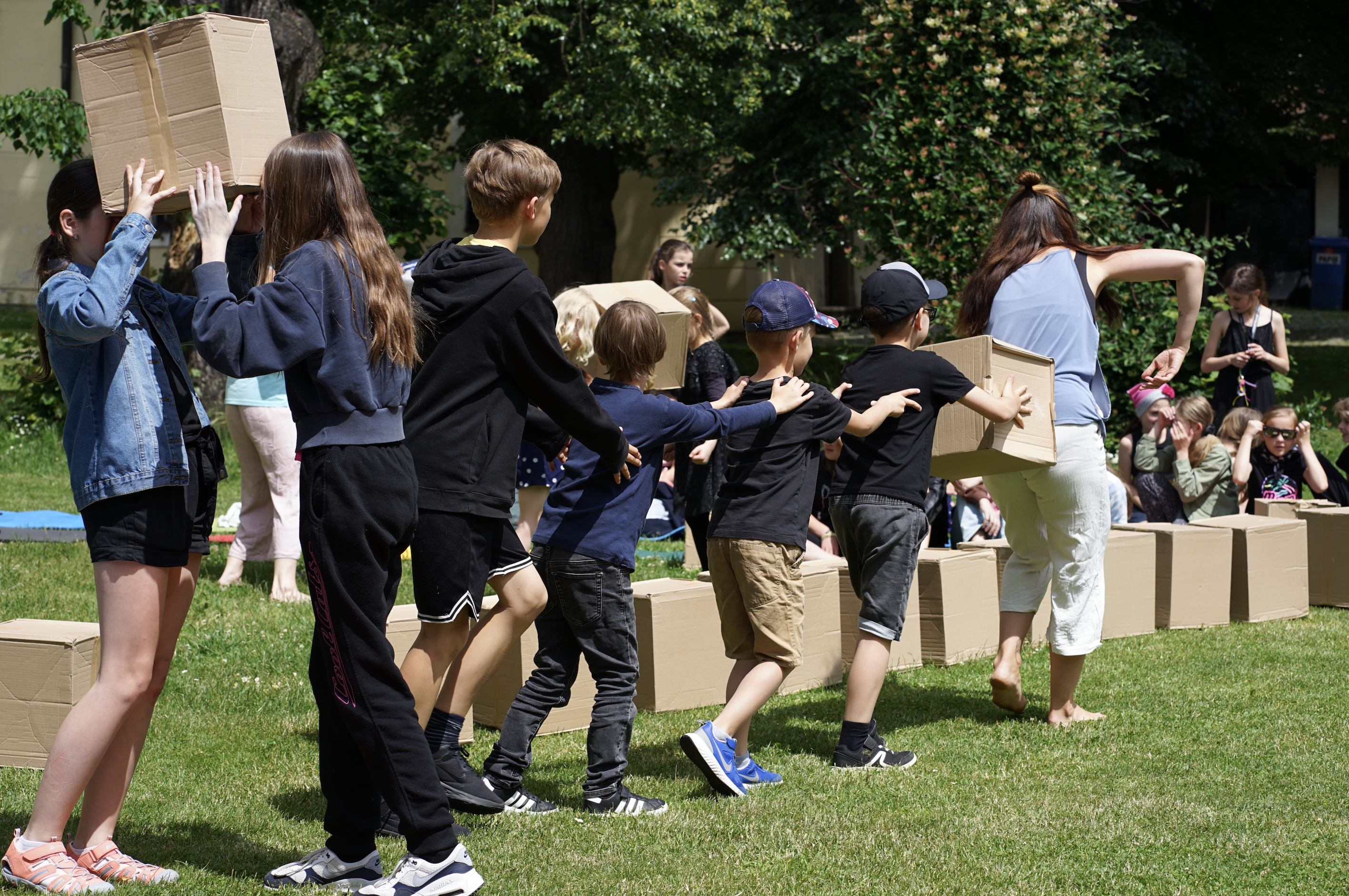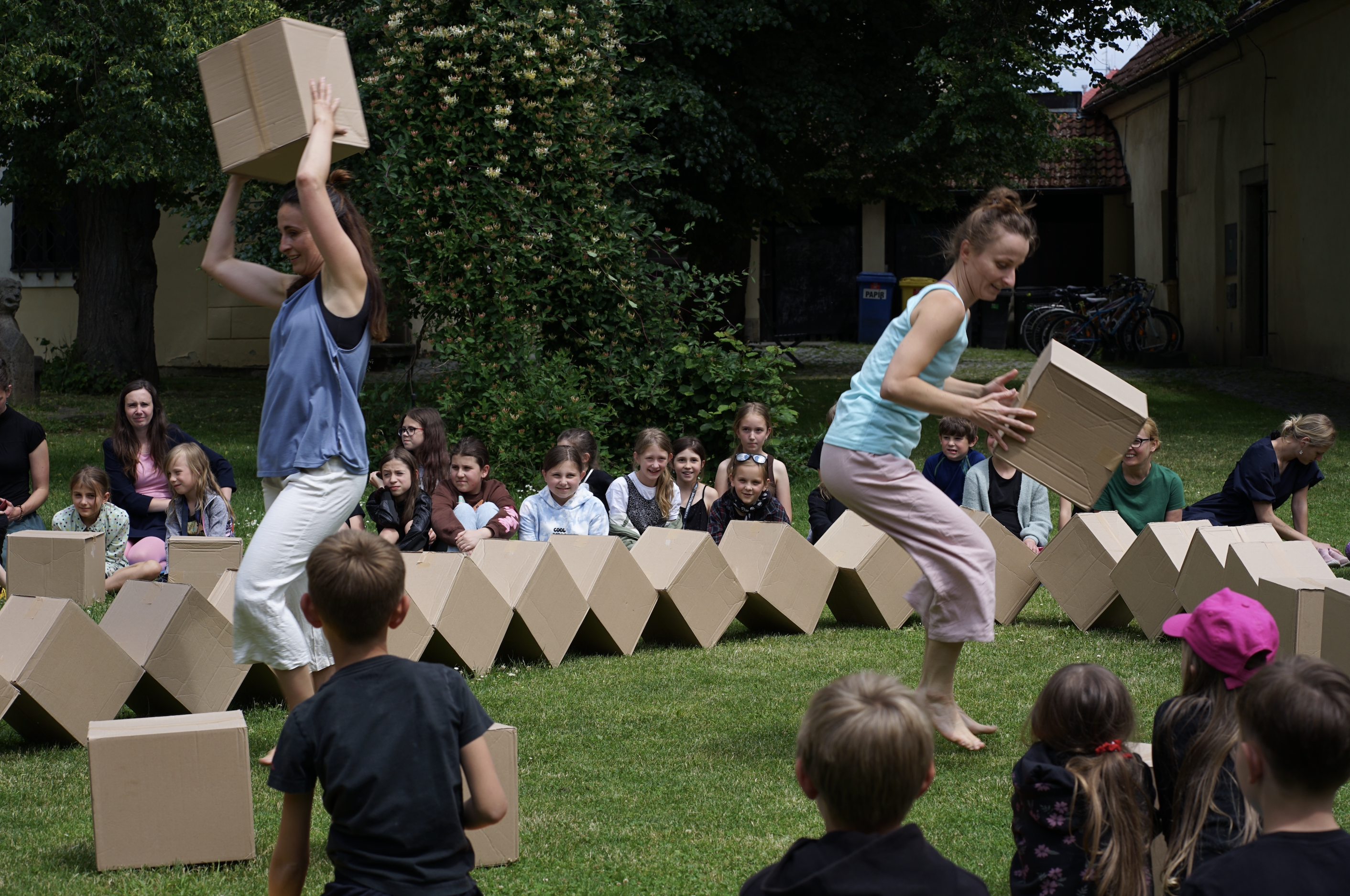 Co všechno může představovat krabice? A co teprve když jich je víc, jsou různě velké nebo v nich někdo bydlí? Jak je můžeme zabydlet my? Přemístit, poslat, přeskočit, posunout, přestavět nebo oběhnout? Jak prožíváme překvapení? Jsme zvědaví? Umíme odhadnout co nebo kdo je uvnitř krabice? Jak zní? Jak je těžká? Můžeme jí něco svěřit? Vím odkud krabice přicestovala a jak dlouhou cestu urazila? A kam patří?